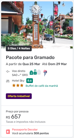 Como se trata de uma oferta dinâmica, os valores podem mudar rapidamente conforme a procura aumenta. Por isso, quem pretende viajar para Gramado em 2026 ou até antecipar a viagem para ainda este ano, vale conferir agora as opções disponíveis na plataforma. Confira agora!