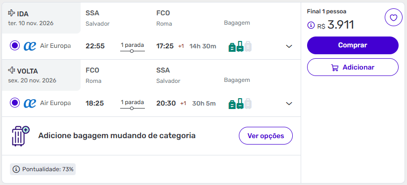 Outra alternativa eficiente, com tempo de viagem competitivo.