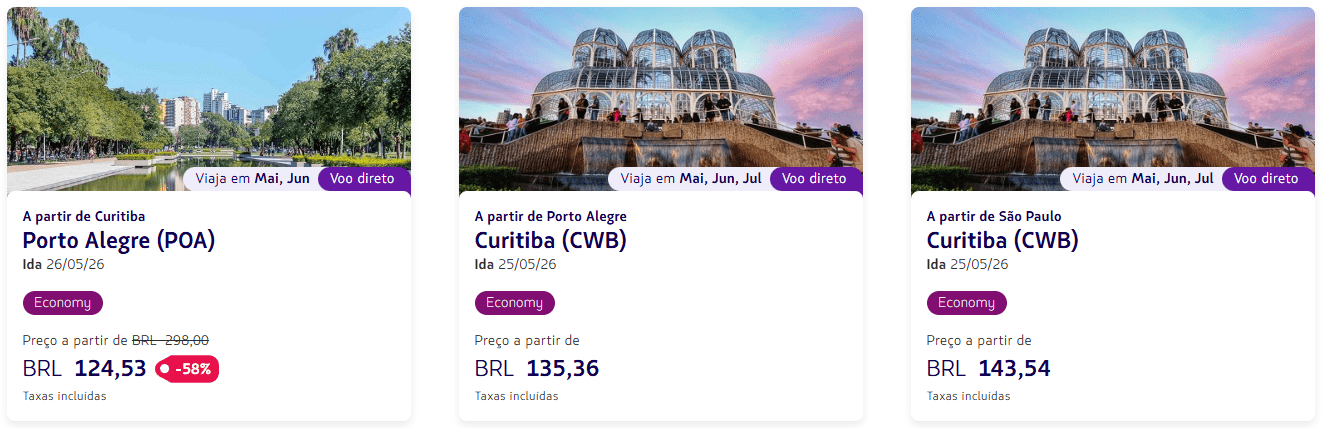 - Curitiba → Porto Alegre: R$ 124