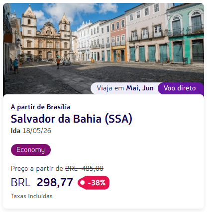 - Brasília → Salvador: R$ 298
