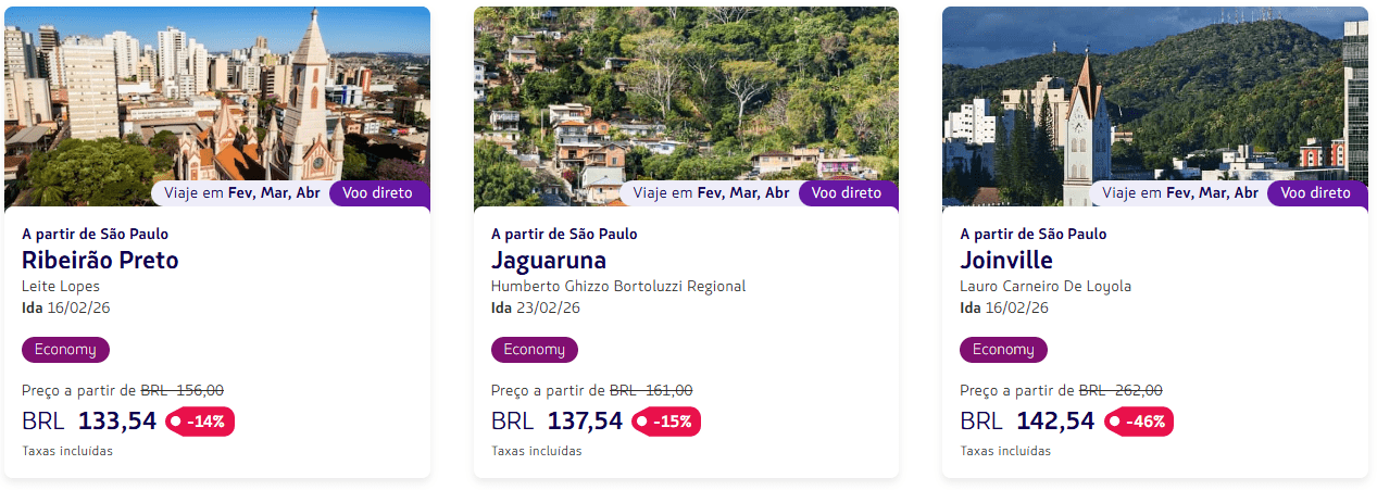 Alguns dos preços mais baixos que encontramos incluem descontos de até 46% e partem de São Paulo: