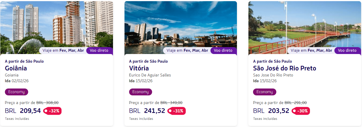 - Campinas → Rio de Janeiro (com conexão): R$ 241,22