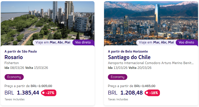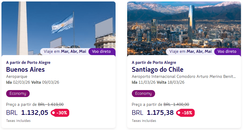 - Porto Alegre → Santiago do Chile (Premium Economy): R$ 2.223,83