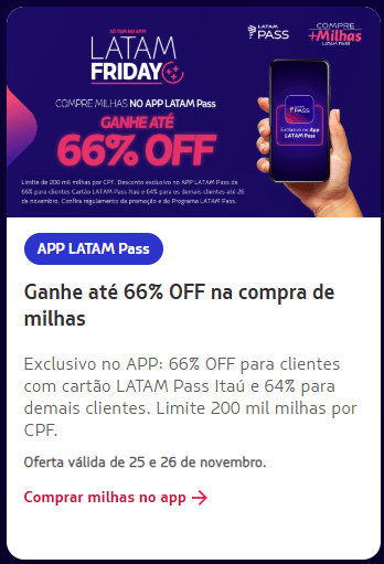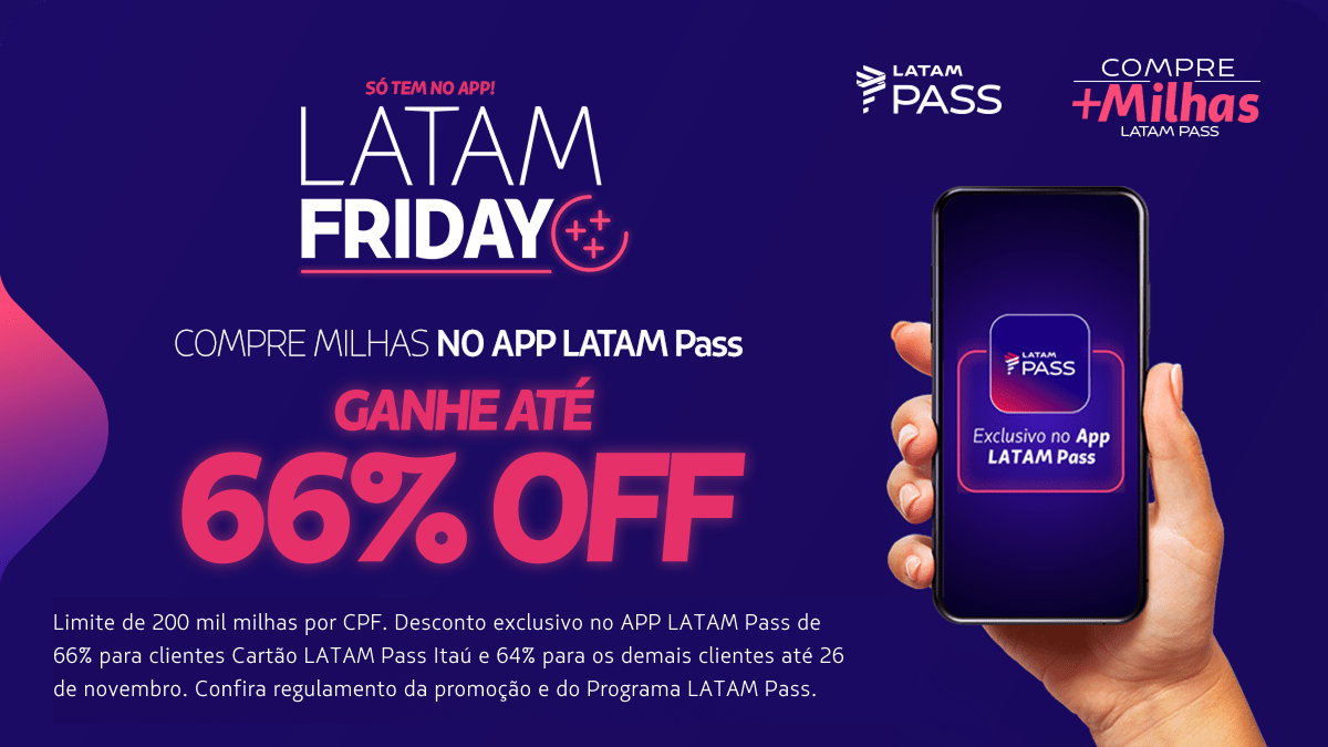 - 66% OFF para clientes Cartão LATAM Pass Itaú