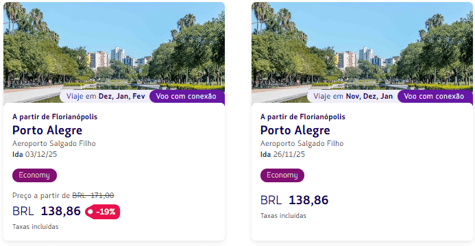Florianópolis → Porto Alegre: R$ 138,86