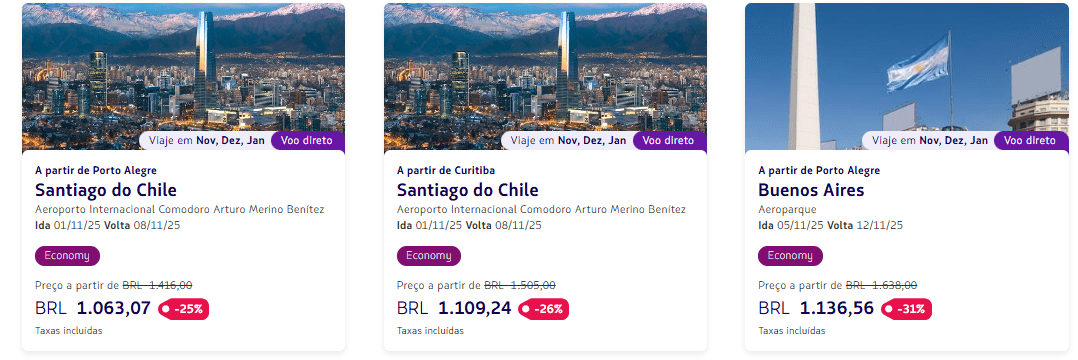 Porto Alegre → Santiago do Chile: R$ 1.063,07