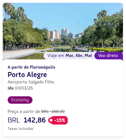 - Porto Alegre → Santiago do Chile (premium): R$ 2.309,19