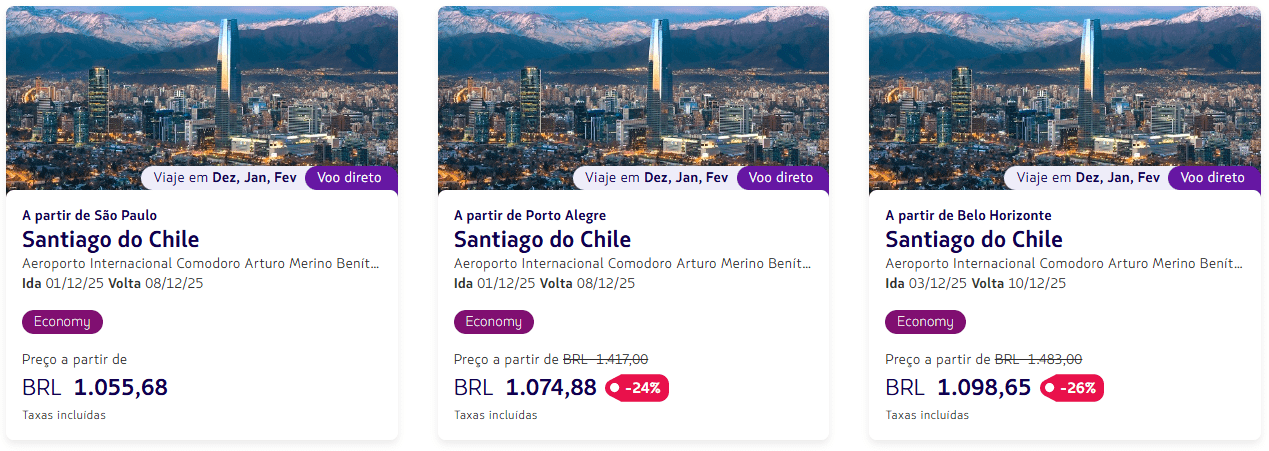 - São Paulo → Santiago do Chile: R$ 1.055,68