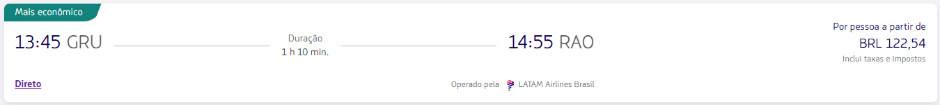 - GRU → Ribeirão Preto (RAO) — a partir de R$ 122,54
