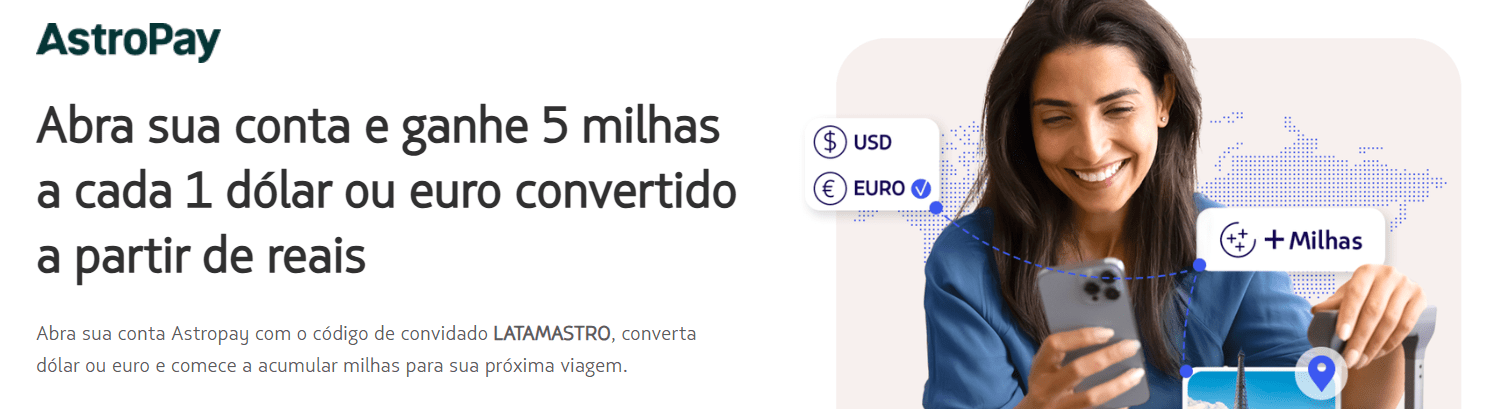Para quem está de olho em formas alternativas de acumular milhas, o LATAM Pass lançou uma nova campanha em parceria com a AstroPay. A proposta é simples: abrir uma conta global, converter reais em moeda estrangeira e receber milhas como recompensa.