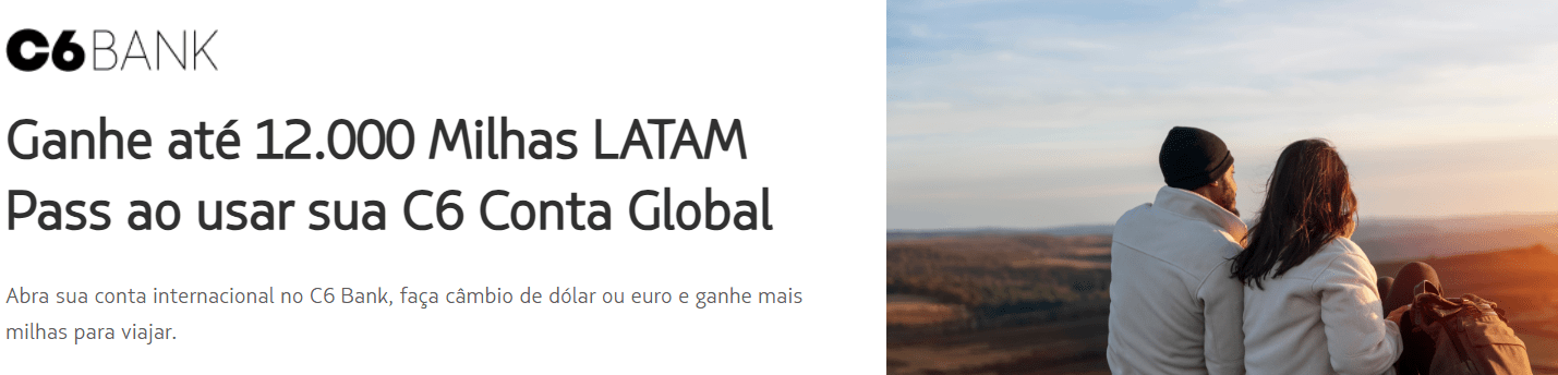LATAM Pass e C6 Bank oferecem até 12 mil milhas em campanha com conta global e câmbio
