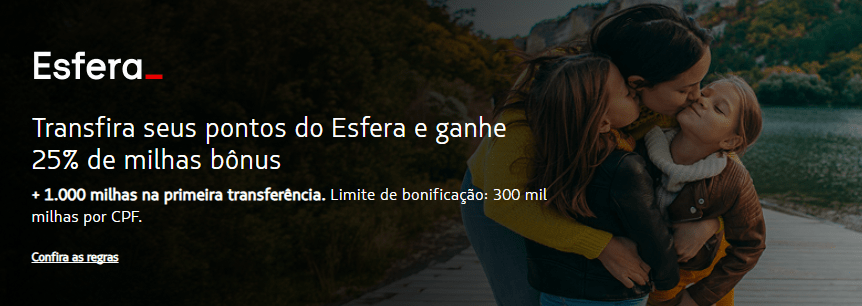 - Até 25% de milhas bônus sobre o total transferido