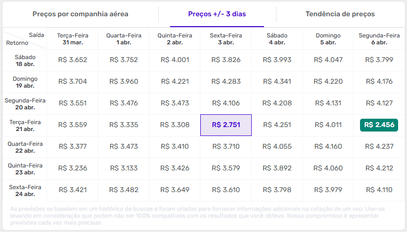 Como as tarifas são dinâmicas, a recomendação é simular diferentes combinações dentro do calendário flexível e emitir quando encontrar o melhor preço disponível.