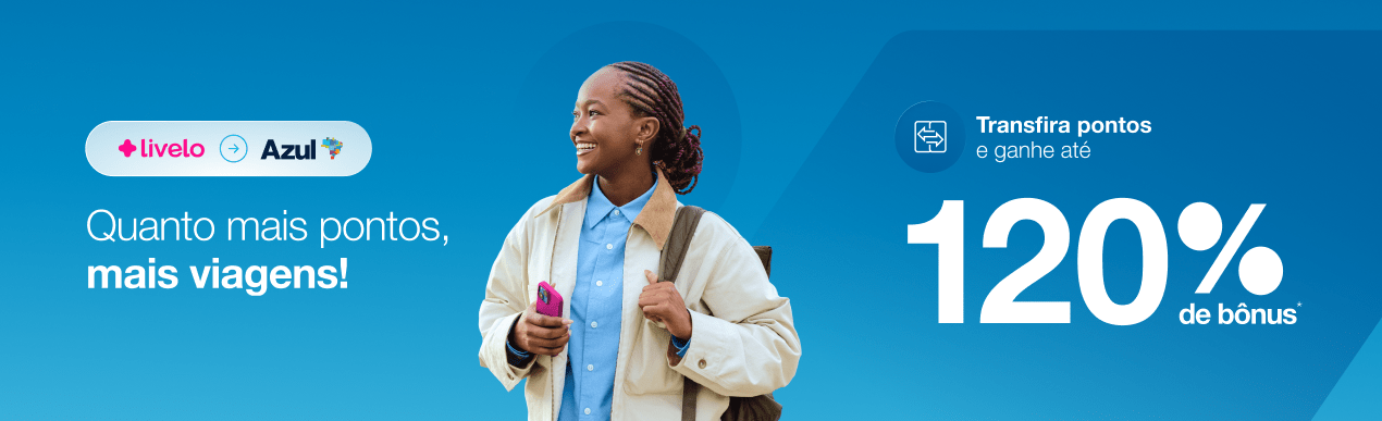 Para quem acompanha o universo de pontos e milhas, algumas campanhas têm o poder de mudar completamente o planejamento de viagem. É o caso da nova promoção entre a Livelo e a Azul, que oferece até 120% de bônus na transferência de pontos — um patamar elevado mesmo para os padrões mais agressivos do mercado.