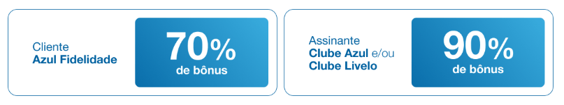 - Assinantes do Clube Azul e/ou Clube Livelo chegam a até 90% de bônus