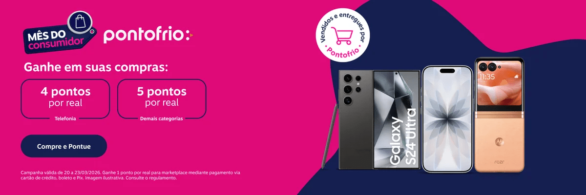 Ponto Frio: 4 pontos por real gasto na categoria de telefonia; 5 pontos por real nos demais produtos vendidos e entregues por Pontofrio e 1 ponto por real para marketplace mediante pagamento via cartão de crédito, boleto e Pix.