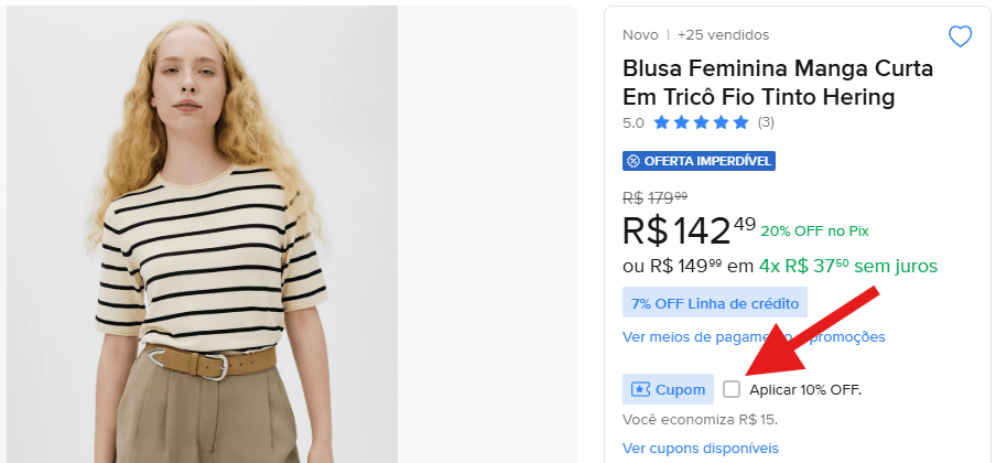 Aplicando o cupom