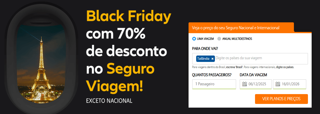 Está acontecendo nesta terça-feira (25/11) uma mega promoção de seguro viagem internacional com 70% de desconto! É a Black Friday da Allianz Travel!