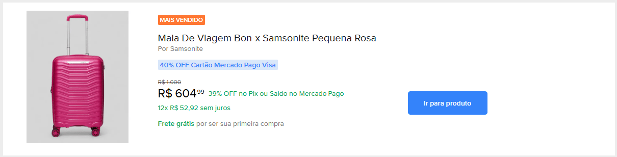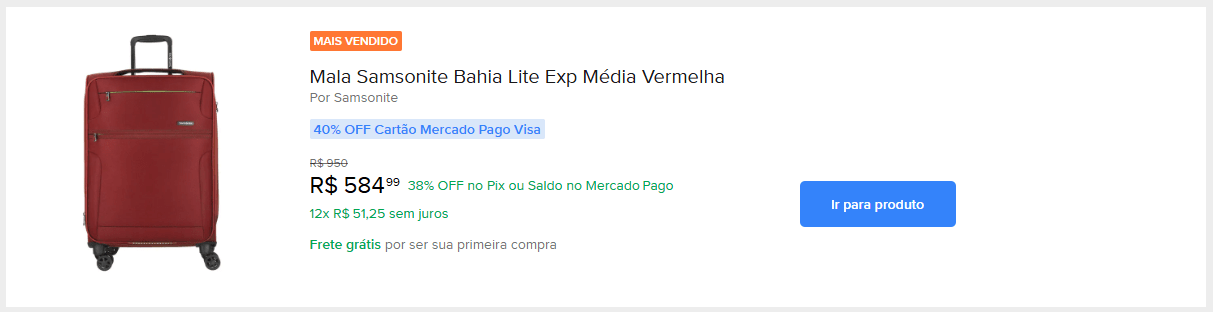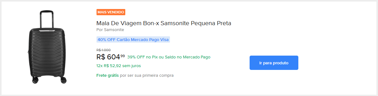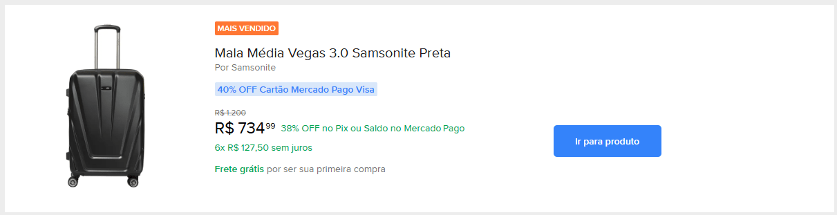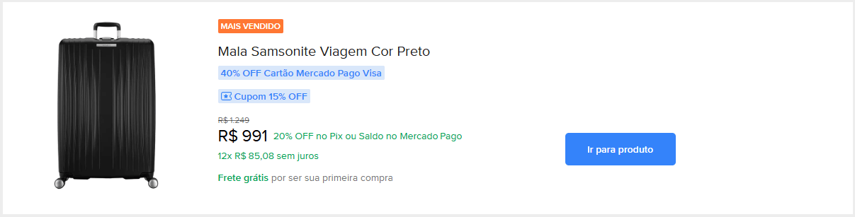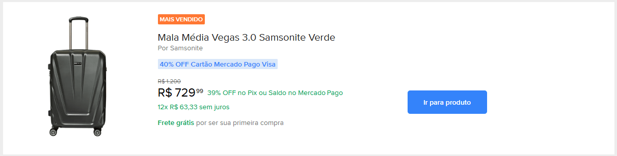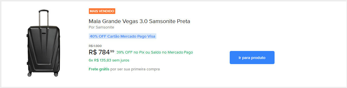 Oferta relâmpago! Malas Samsonite com até 46% de desconto na loja oficial da marca no Mercado Livre