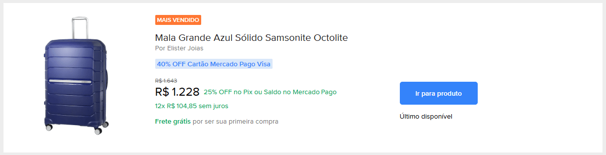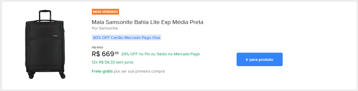 Malas Samsonite com até 57% de desconto no Mercado Livre em nova oferta relâmpago!