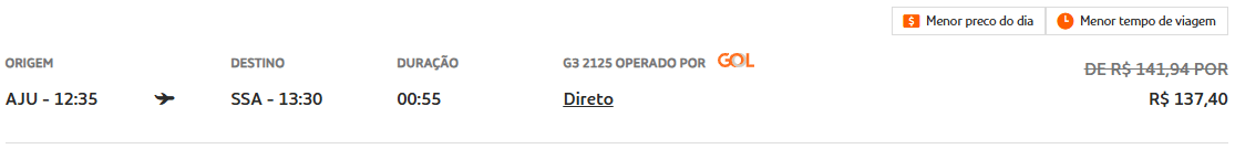 - Aracaju (AJU) → Salvador (SSA): a partir de R$ 137,40