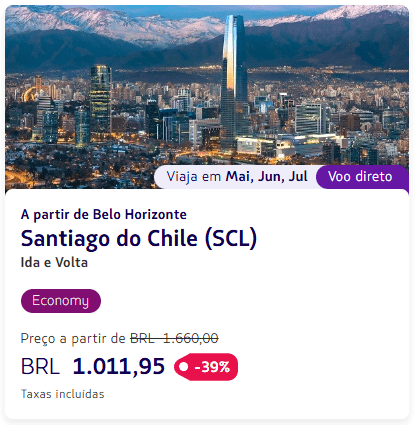 - Belo Horizonte → Santiago — R$ 1.011,95