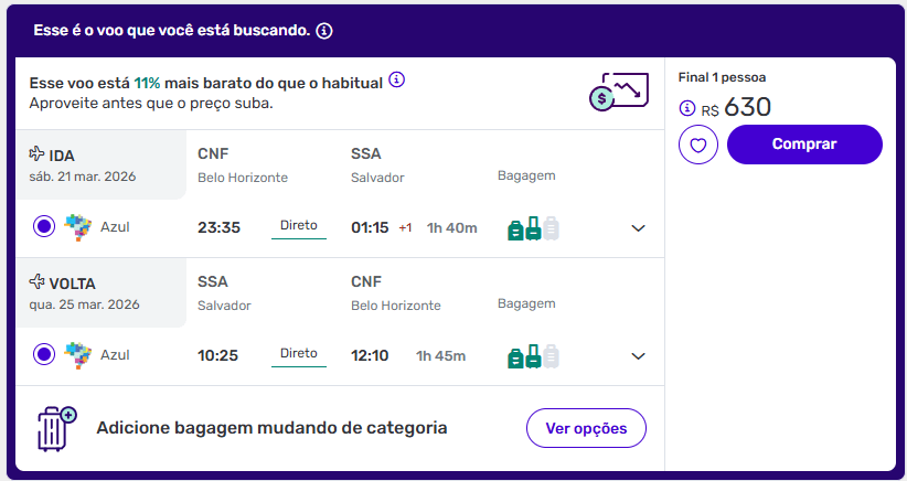 Exemplos de passagens aéreas baratas para Salvador