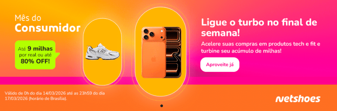 As promoções são válidas até 23h59 do dia 17 de março e incluem itens de moda, calçados, eletrônicos e eletrodomésticos. Dependendo da oferta, os produtos podem ser resgatados com milhas ou comprados em dinheiro acumulando milhas na compra.