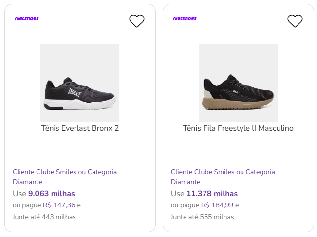 Tênis e calçados com acúmulo de milhas