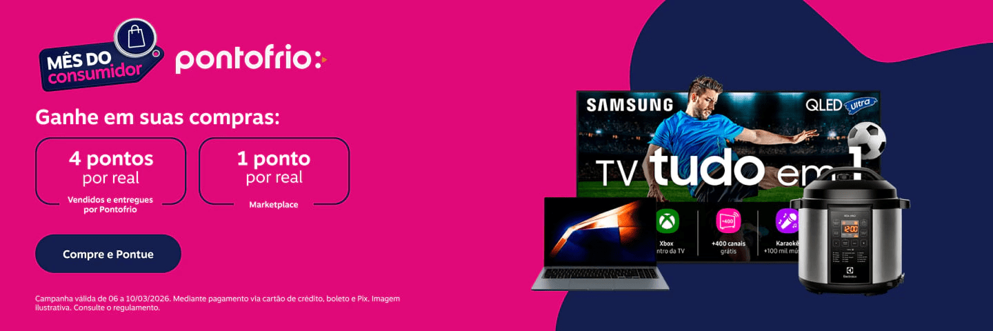Ponto Frio: 4 pontos por real gasto em produtos vendidos e entregues por Pontofrio e 1 ponto por real para marketplace mediante pagamento via cartão de crédito, boleto e Pix.