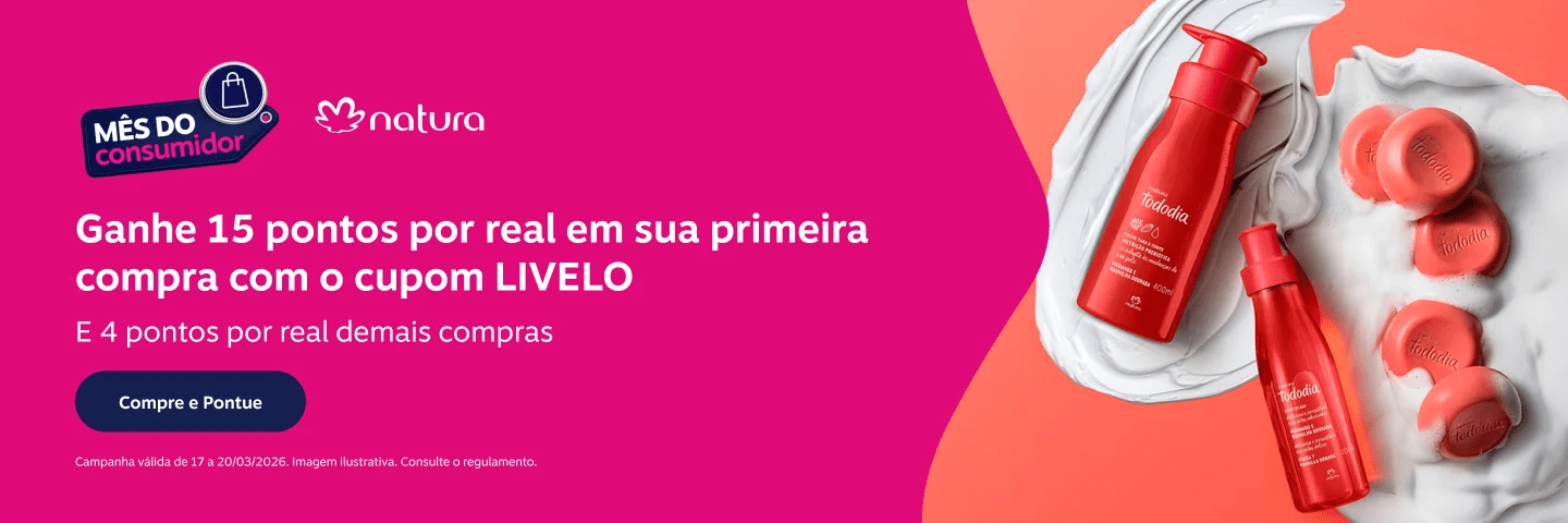 Natura: 15 pontos por real gasto exclusivo para primeira compra na Natura e 4 pontos por real nas demais compras.