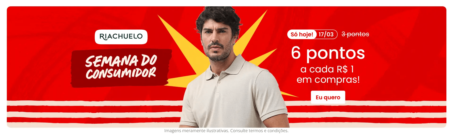 Riachuelo: 6 pontos a cada R$ 1,00 em compras no site.