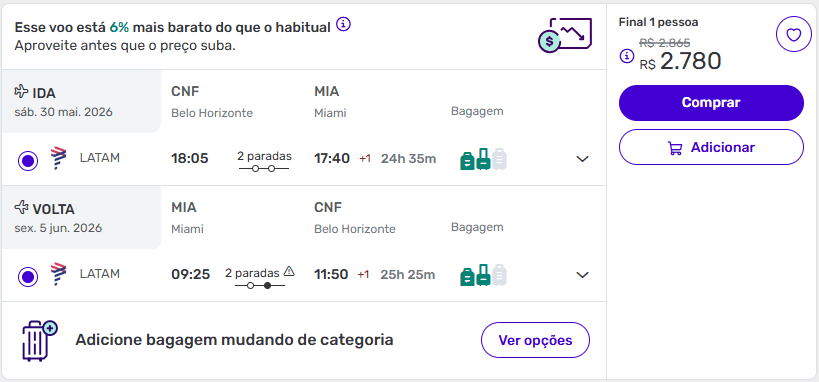 Apesar das conexões mais longas, o preço ainda é competitivo para quem prioriza economia.