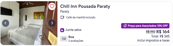 - Selecione a opção “Preços para Associados”: se você for um cliente associado (é grátis!), selecione essa opção no filtro para encontrar hospedagens com descontos ainda maiores.