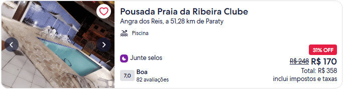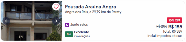 Há muitas outras ofertas de hotéis com preços baixos no site, tanto para Paraty e Angra quanto para diversas outras cidades, estados e países. Vale a pena pesquisar com calma, porém é preciso ficar atento à validade das ofertas.