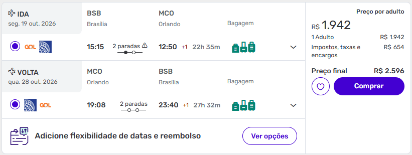 De Brasília para Orlando a partir de R$ 2.596 ida e volta com bagagem.