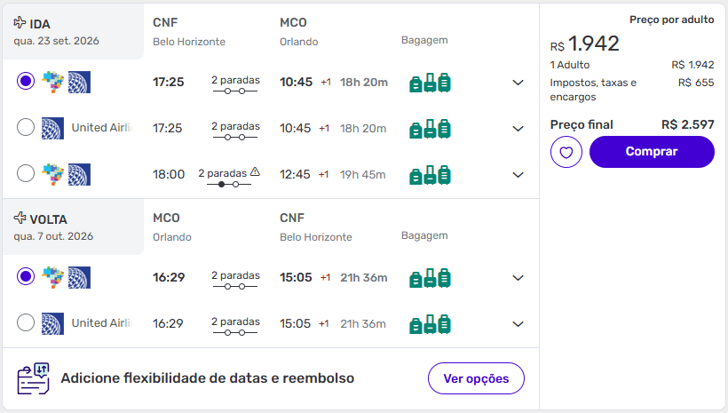 De Belo Horizonte para Orlando a partir de R$ 2.597 ida e volta com babagem.