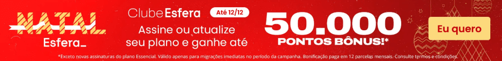 - O que é o Clube Esfera? Um programa de assinatura mensal com benefícios exclusivos em pontos, produtos, viagens e parceiros.
