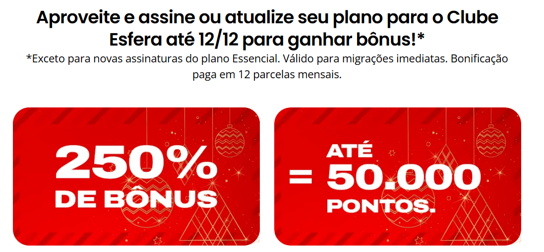 Hoje, 12 de dezembro, clientes que assinarem ou atualizarem seus planos — com exceção de novas adesões ao plano Essencial — recebem um bônus adicional de até 50.000 pontos, liberado em 12 parcelas mensais. A oferta é válida apenas para migrações imediatas.