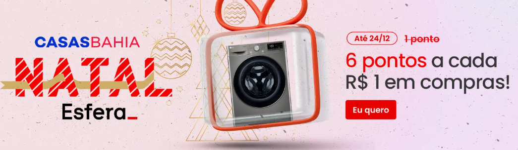 Casas Bahia: 6 pontos a cada R$ 1,00 em compras no site.