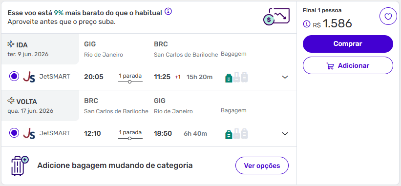 - Possibilidade de adicionar bagagem despachada