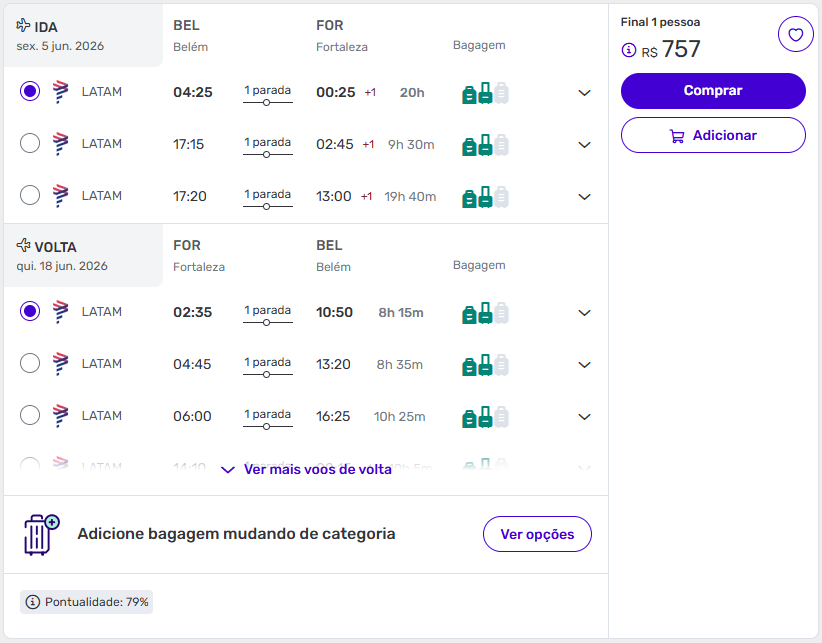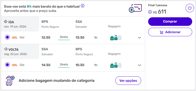 - Ida em 19 de junho de 2026 e volta em 22 de junho de 2026