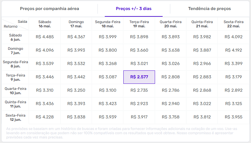 Todas as tarifas informadas são para voos ida e volta e já incluem impostos e taxas. Como os preços estão até 10% abaixo do habitual em algumas datas, a tendência é de ajuste conforme a disponibilidade diminui.