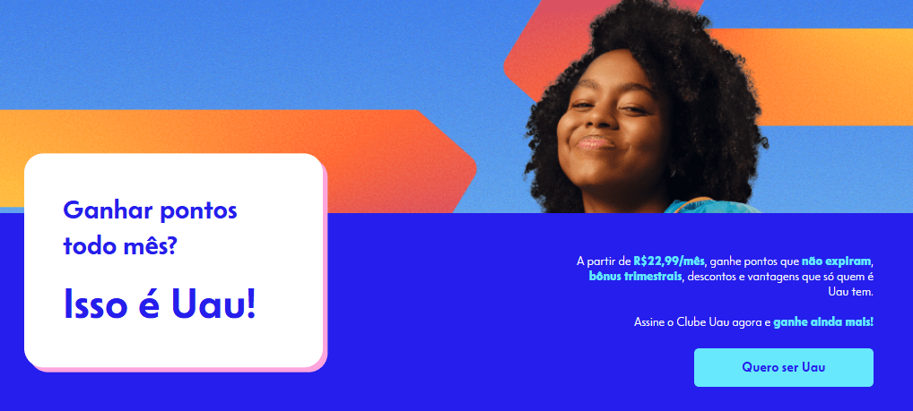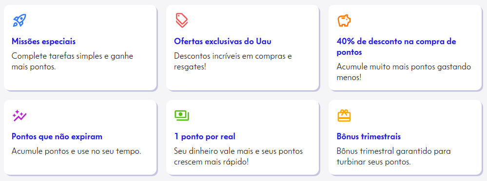 - 1 ponto extra por real gasto no Shopping UAU, somado ao acúmulo regular