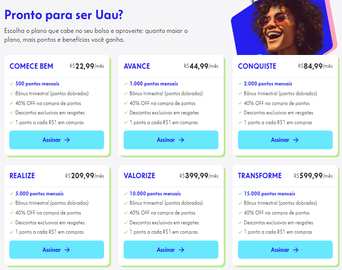 Ao todo, são seis planos disponíveis, com mensalidades que variam entre R$ 22,99 e R$ 599,99, permitindo perfis de uso bastante distintos, do consumidor casual ao usuário intensivo de pontos.