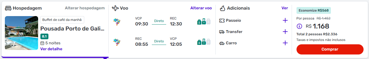 - Total para 2 pessoas: R$ 2.336 (sem taxas)