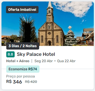 | Brasília | a partir de R$ 818 por pessoa | Ver pacote |