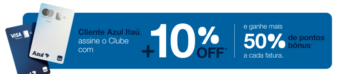 - Portadores de cartões Azul Itaú podem obter 10% de desconto adicional na mensalidade, desde que o cartão seja cadastrado como forma de pagamento.