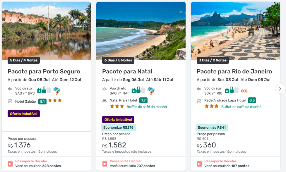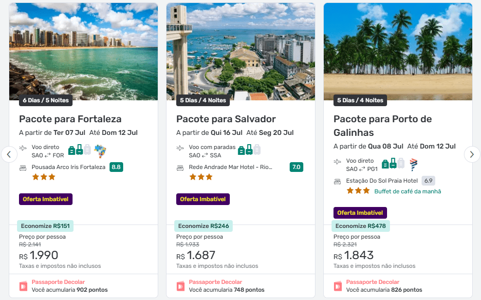 Também encontramos outras alternativas de pacotes de viagens em julho de 2026 para quem quer viajar dentro do país: