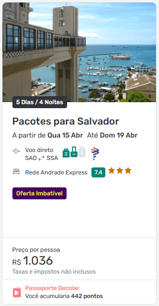 - Voos diretos São Paulo → Salvador (ida e volta)